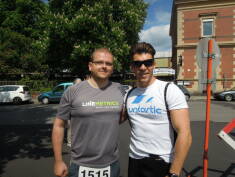 Runtastic-Gründer Florian Gschwandtner und LineMetrics-CMO Wolfgang Hafenscher nach einem Laufevent in Linz. Das Fotosetup haben die beiden, frisch informiert über die Top-Plätze beim UPside award, selbst in die Hand genommen. Es war ein Kräftemessen auf hohem Niveau.
