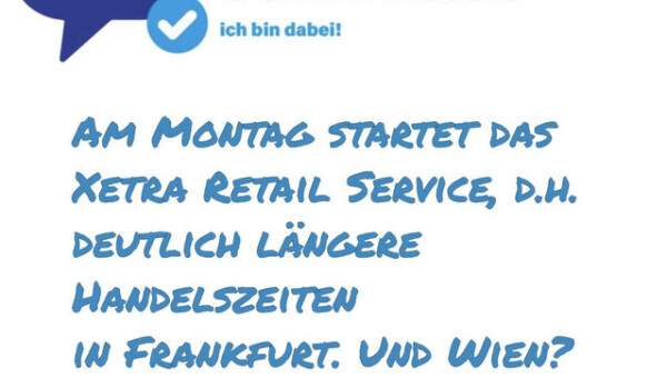 kapitalmarkt-stimme.at daily voice: Am Montag startet das Xetra Retail Service, d.h. deutlich längere Handelszeiten in Frankfurt. Und Wien?