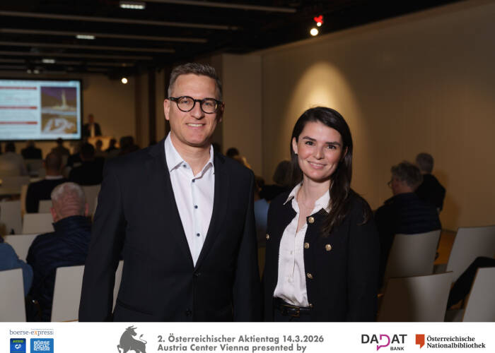 - Main Events 2026. Für 14. März (9:30 bis 14:30 Uhr) luden Börse Social Network und Börse Express im Rahmen des 10. Börsentags Wien (B2MS) zum 2. Österreichischen Aktientag http://www.boersentag.at . Es präsentierten Frequentis, ADX Energy, Strabag, FACC, Palfinger, oekostrom, Cyan, Porr, VIG, UBM, Polytec, WEB Windenergie und Semperit. Unsere Print-Sondernummer (siehe Seitenteil) wurde 1200x an interessierte BesucherInnen abgegeben, gesamt waren +2000 Leute am 14. März im Austria Center Vienna zu Gast. Danke an alle, für 2027 gibt es bereits Slot-Reservierungen und 2026 werden wir noch Österreich-Specials bei deutschen Börsentagen machen. Stay tuned.