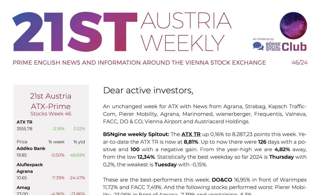 Heute stellen wir unser Free Financial Literacy Servie #2 vor, weitere werden folgen. Es geht um "21st Austria" auf boerse-social.com mit englischsprachigen Web-News und einem wöchentlichen PDF in englisch zur Wiener Börse.