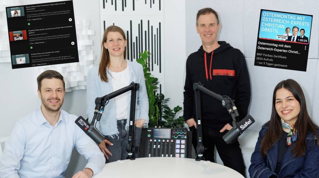 Hören: https://open.spotify.com/episode/4S1upDxC5X8Q8UvJYMoU4h Die Wiener Börse startete mit dem Podcast-Netzwerk Missing Link ein neues Podcast‑Format: „Safe! Stories übers Investieren“. Hosts sind Anna-Lisa Bier und Alexander Wastl, die ca. 30-minütigen Episoden (vgl. http://www.audio-cd.at/people) erscheinen künftig 14-tägig jeweils donnerstags auf allen gängigen Podcast-Kanälen. Zum Auftakt wurde ein Dreierpack zum Eingrooven live gestellt: Influencerin Bianca-Olivia (Austrian Material Girl), Journalistin Elisabeth Oberndorfer (smart casual) und Para-Schwimmer Andreas Onea (ORF). Like! Safe! https://open.spotify.com/show/7saBsHvOPSqcTpTvF2PbWj https://www.wienerborse.at/news/wiener-boerse-news/neuer-podcast-safe-stories-uebers-investieren/